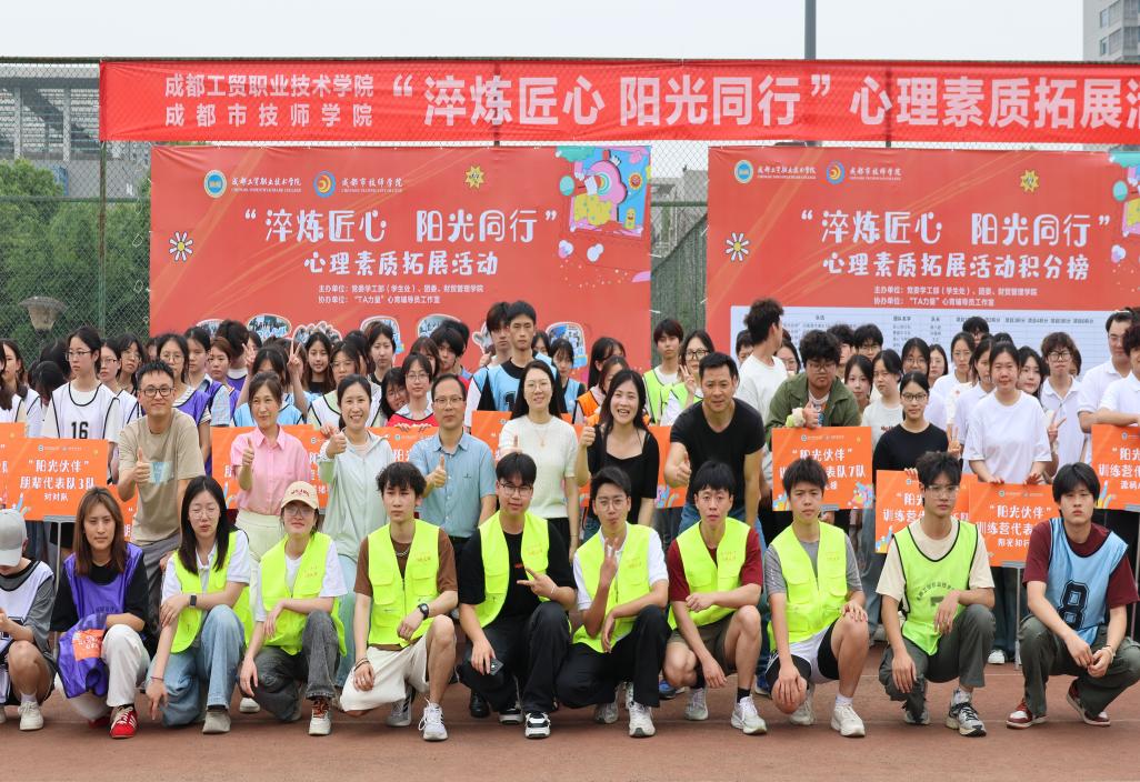 5月14日,由财贸管理学院承办的“淬炼匠心 阳光同行”心理素质拓展活动在田径场举行。活动吸引25支队伍参与,学工部部长刘万龙现场致辞,心理健康指导中心主任唐颖彦为团队加油。活动将工匠精神培育融入心理健康教育,引导学生在沉浸式团队协作中锤炼精益求精的品格、执着专注的态度,全面提升抗压能力与心理韧性,着力打造了具有职教特色的心理育人品牌。